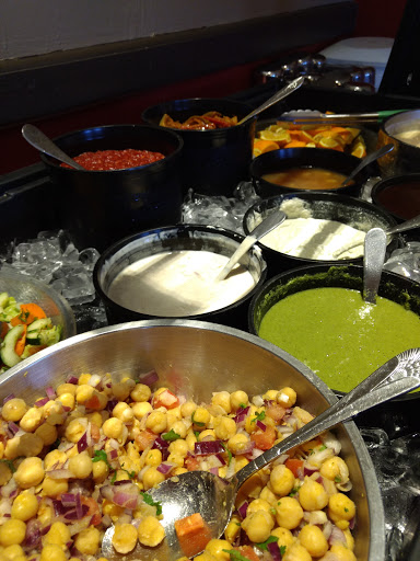 This is the old Cypriana Greek restaurant building, but they actually did a pretty good job on "Indianising" it. For $8.95, you get a really good selection of fresh, hot buffet items such as chicken tandoori, tikka masala and some spinach dish, as well as some salads, chutneys and Naan. The service is impeccable, I didnt have to ask for my water to be refilled once. Another thing to note is that they had lamb on the buffet. I will certainly be back!