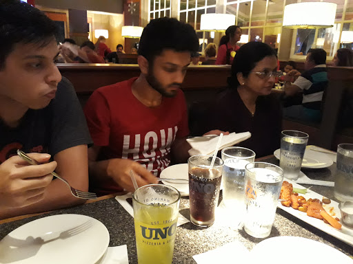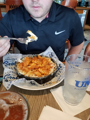 My wife and I first visited this Uno in 2013 while we were on our honeymoon so it is kind of special to us. We recently returned to Orlando and decided to stop by on our second night in town. It was every bit as good as we remembered. We were there on a Tuesday, early in the evening and it wasnt super busy so our server had time to focus on us. She did a great job and the food was fantastic as usual. We each got a deep dish pizza. Unos pizza is unique and doesnt taste like any other pizza place. A couple of days later, we were trying to find another place to eat and not having any luck so we returned here out of convenience since our hotel was on Palm Parkway about five minutes away. My wife got the pizza again but I got a burger instead and it was outstanding. Definitely one of the best burgers Ive ever had. Far from the cheapest, but it was well worth the money. This visit was a little later in the evening and it was a tad busier. Still the service was great. We actually went a THIRD time on our last night. Thats how much we love this place... plus we dont have one close to where we live in Virginia. This time we arrived about 7pm on a Saturday and it was packed. However we were seated right away and again had a great server. My wife tried the thin crust pizza and I got the Fireball Whiskey BBQ chicken sandwich. This was the only time we werent crazy about what we ordered but it was still very good. I think my wife had just burned out on pizza and the BBQ sauce on this sandwich has a cinnamon hit to it from the whiskey which for me was just OK. Our server, while doing the best he could, was a little overwhelmed and didnt check on us as much as we had hoped. But he was polite and got everything on our order right so we were still happy. If you are on vacation and want to splurge a bit on a special experience, Uno is a good choice. Try to go earlier on in the late afternoon/early evening to avoid the rush and if you like peanut butter & chocolate together... try the peanut butter cup with ice cream. Its awesome!