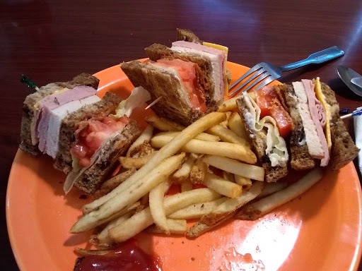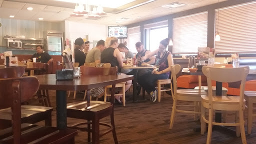Waitress was lovely, funny and kind... food fair, MANAGEMENT SUCKED... Lazy, loud, drank coffee in middle of restaurant THREE PEOPLE SITTING IN MIDDLE OF RESTAURANT DRINKING COFFEE! Sweaty employee laying on table filling out paper work, store manager ( assuming wearing orange shirt) talking numbers And in appropriately about other stores in dinning area! And he wonders why they moved him to a slow store! I found the whole dynamic of workers sitting and having coffee in the middle of the dinning floor ridiculous!