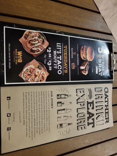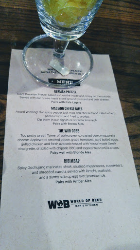 Call me crazy... My wife and I decided World of Beer was a good option to meet her old co-workers in town for the day. And bring along our two kids under 2 years old... When we arrived at 2pm on Sunday afternoon (during football season!!) there werent any open tables inside. Everyone was watching the game and the place was packed. Its open seating, so... with 4 adults, two kids and a double-stroller, we were totally out of luck on snagging air conditioned seating. So... we decided to sit outside. Holy cow. We were melting by the time the beer showed up. I wasnt sure how we were going to last through a whole meal. And then, our server, Morgan, did something AMAZING. "Hey, a table JUST opened up right here inside the door I think will work for you guys. If you HURRY you might be able to snag it!" "YES!" And we scrambled the stroller, kids, water, beer and our butts through the doors as fast as we could into air-conditioned, booth-seated bliss. She helped carry our drinks inside. After that, Morgan did a great job taking care of our orders and the food was great. I especially loved the pretzel. It comes to the table hanging on a big hook -- its pretty impressive. THANK YOU MORGAN. You saved our afternoon.