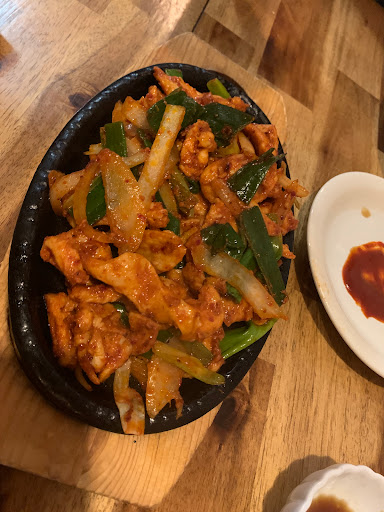 A small, but cozy restaurant. A little pricey but well worth the money. The food served here has that authentic Korean taste starting with the appetizers that came with very zesty spice that is a good combination of taste and "hot." The entrees followed suit with equally great taste and very cool presentation. In my case, my dak bulgogi was served on a sizzling skillet, brought to my table by our very attentive waitress.