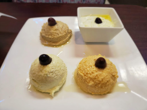 I had the hummus. Good garlic and lemon taste. Very creamy, served with pita triangles.