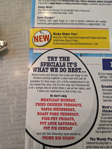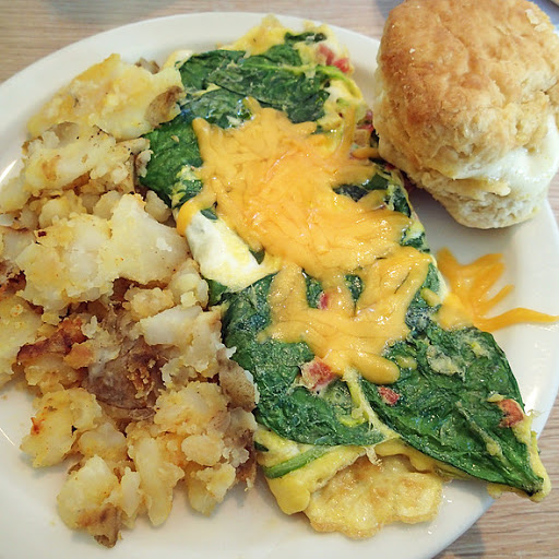Ive been to the new location a few times, and definitely liked breakfast at the old location in the past. However, my trip today was not great. I came in around dinner time because I was craving breakfast for dinner. First, Ill say that the food is overpriced for the quality. Secondly, I was dying for some gravy and biscuits...but the ones I was served were rancid tasting. It was almost like the bacon grease they used was rotten. It was so awful, it actually tasted like vomit. I had to push them aside. Didnt even bother mentioning it to the waitress. Speaking of waitress - she was nice, but how am I seated without a kids menu when I have a 4 year old with me, on a night that I find out AFTER I get my check that kids eat free? Somehow the guy in the booth in front of me with two kids found that out, but I didnt. So, I ended up paying $18+ a good tip for subpar food, when I could have gotten my daughter her own plate for free?! Stop it. I did give the waitress a nice tip because Im nice, but overall, I will not be returning here despite it being right down the road from my house.