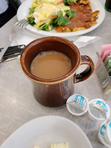 Slow, inattentive, very, very loud interior, cold and badly presented food and expensive. Thats the synopsis: the details? We arrived Sunday morning at 8:55, registered and waited outside with the pager until, at 09: 35 after after noticing several customers thatd arrived after us being called and seated, I enquired as to our status. I was given apologies as wed been marked as processed but skipped over. An inauspicious start. Sat down, we waited nearly ten more minutes before being asked if wed like a drink. Wed already had enough time to review the menu and so ordered a soda, coffee and our meals. Drinks came five minutes later: the food, almost fifteen minutes later. It was really badly, messily plated and -- at best -- luke warm with the eggs Id ordered as over easy cold. Which would explain why when I initially cut into them they spewed uncooked, clear albumen onto the plate. The "home fries" were a mess and also undercooked with hard, cold -- almost raw -- potato slices. Ugh. For eggs benedict, eggs and hash, a side of grits, coffee and a soda, $25 strikes me as high. Even more so, with such awful service and horrible food. The one single redeemig feature was the (mens) toilet facilities were spotless. Well never, however, bother with this joint again: it was, back in the day, a much nicer experience. Theyve jumped the shark with this new effort. Time to move on. Id suggest you try Ke Kes -- far, far better experience!