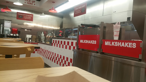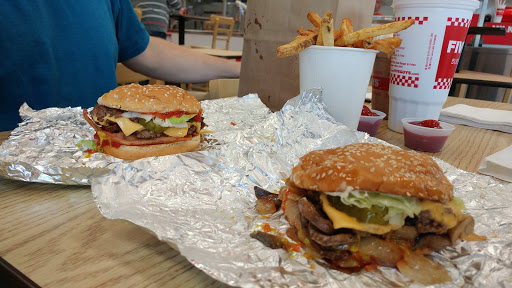 Another Five Guys with basically the same appeal of every other Five Guys. Huge greasy burgers and mountains of fries await. Parking is adequate for the location and the store is kept clean even with a steady flow of customers. It is not five star dining, but it will fill you up in a clean, family friendly environment.