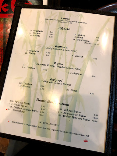 I wouldnt eat anything other than hibachi here, had tempura shrimp and chicken, it was almost all bread, no exaggeration! They originally got order completely wrong (we didnt complain we let her know very nicely and offered to keep what they brought if they would give it to us at the same price as what we ordered. It was only about a $3-4$ difference per meal. They wouldnt let that happen they said if we kept what they would charge full price. So we had to wait even longer to get our meal.