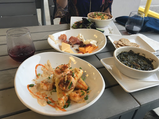 Really enjoyed the ambiance and music. My cocktail, the "Bramble On", was amazing. Highly recommended. Spinach artichoke dip was fantastic. I truly enjoyed the hint of cilantro. Honestly, best Ive had! I could see it being a little too salty for some peoples palates. My wife enjoyed her shrimp and grits despite it being spicier than what she typically likes. I tried the grits and they were very good. The greens were also good, which is something I rarely enjoyed. I ordered the Steak Chimichurri. The meat was very well prepared. The Chimichurri sauce was fabulous. The garlic potato hash was a bit overcooked and chewy. The seasoning was rather salty as well. Service was passable. Good timing but not very attentive. Not good when there are only two tables in the entire restaurant. Overall, we enjoyed South Market and would gladly return to try other menu items.