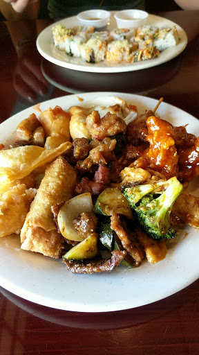 Great Food, but average Service, they have a selection of both Japanese roll Sushi and Chinese-American cuisine. Including sweet and sour, sesame seed, black pepper, teriaki chicken, beef, seafood, white rice and fried rice. They have like 15-20 different selections of sushi.There is also a small fruit bar and dessert bar. The service is not excellent, but it is alright, it seems some of the cooks and workers are not Asian, however the waitresses, cashier and the Itamae (sushi Chef) appear to be Asian and dont seem fluent in English, though it is not a major detracting factor. The interior decoration is very well done. Restaurant is clean as well as the tables, dishes, and cutlery. Also all the food looked and tasted freshly made. However the thing that prevents me giving this restaurant five stars are the location, compared to the inside it seem old and outdated for the local. The Sushi runs out quickly on busy days because they only have three people making the rolls. Finally lunch for one person plus the drink come out at $ 11.45, so its more expensive than lunch at some other establishments, but for the amount you can serve yourself (I got three plate fulls piled high) it seems fair. Recommend for large family outings or friends, for a good time, dont know if they have alcoholic drinks.