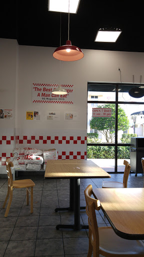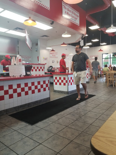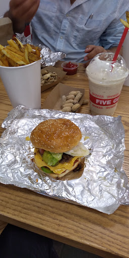 I like 5 guys, but not this one. Terrible front cashier service, she couldnt crack a smile to even my kids, and then the food was really sub par compared to the other 5 guys. Burger and bacon way over cooked, a tiny smear of bbq sauce and like 10 grilled onion pieces. Cold, unmelted cheese. Yep we still ate but I definitely wont visit this location again.