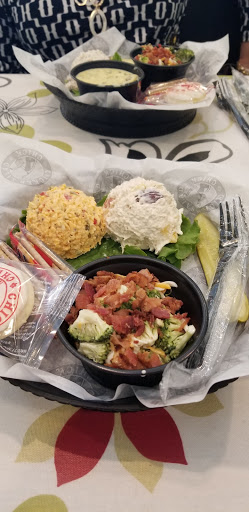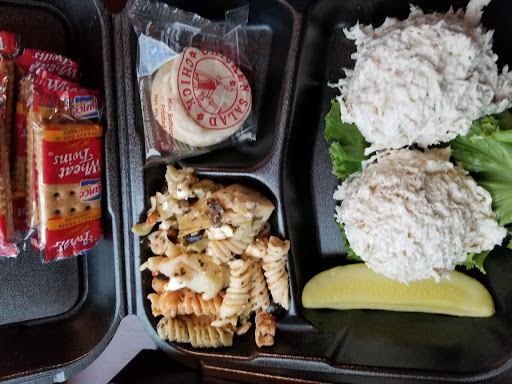 Today was my first time eating here and I was very excited. However I ordered a scoop of kicken Kay chicken salad and asked for crackers. I was informed at the window that they were in the bag and I went to work to eat lunch.. sadly no crackers.. just a scoop of chicken salad and it contained ZERO bacon, cheese or jalapenos and wasnt in the least bit spicy! Im not even sure what it was that they gave me, but Im very disappointed. I cant say I enjoyed it very much. The grape salad was delish and the broccoli salad had shredded cheese that was oddly really hard and tasted old.