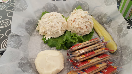 Good Chicken Salad This is an American fast food chain that specializes in Chicken Salad, in various varieties, and has locations throughout the Southeastern United States. We visited this location a couple months ago for lunch to give it a try. My wife, daughter and I all ordered some variation of Chicken Salad. I ordered a chicken salad sandwich with an extra scoop on the side. My wife and daughter both ordered chicken salad sandwiches of different varieties. They have probably 8 - 10 different varieties. The sandwich was good, but the scoop was a little weird to just eat. The prices are a little high - we spent over $11/person for lunch, which I think is high for a chicken salad sandwich. The do give you a sugar cookie with every meal though.