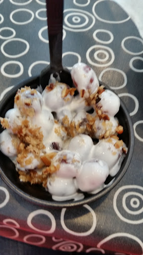 Great chicken salad. My wife and I went there for lunch. It seemed pretty busy, but no wait or anything like that. For our first visit, we were offered free samples of all the different varieties available as well as an explanation of the menu which was helpful. A member of the staff walked by and asked us how the meal was and we asked if they had milk for our 2 year old daughter. They did not, but he gave us a free apple juice instead. Friendly!