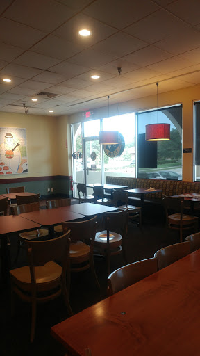 This is a “fast-food” joint of bagels – there is nothing particularly special about the bagels or the other food (sandwiches, salads). The coffee is tasteless and served at about 1000 degrees. Speaking of taste, the “gourmet” bagels are loaded with salt, sugar and additives: these “bagels” are simply donuts with extra salt. A jelly donut is a healthier option. True bagel lovers will take a bite of these preservative laden dough-pies and yearn for a real bagel even more. The true downfall of this particular location (Einstein is part of a chain) are the insolent teens working behind the counter. Is the management asleep? Unemployment is 13% folks, find someone who knows how to say “Thank You” rather than a grunt from a hung-over brat who is just trying to get through the 12th grade. BUYER BEWARE: most of the bagels are not included in the “dozen” price – the “upcharge” is not disclosed until you get to the register. The charge is offensive and raises the cost of a dozen bagels to a breath-taking level. Oh, and don’t even think of asking for an explanation of the receipt when you get over-charged ($3 for a bagel..really?). The impudent staff will offer a few more mumbles of impertinence.
