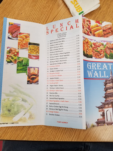 We always order from Great Wall, they have the best chinese in the area. This place is family owned & they are always freindly. The staff often remembers my husband 7 me, plus the food never fails to please