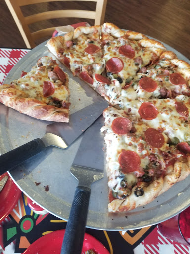 Yummy Chicago style pizza (if you get deep dish plan on a 45min bake time, or order it ahead and then you can take it home, or eat it when you get there). Inside has a Chicago sports feel and Chicago pride is evident!!! Great staff and a fun place to hang out to enjoy some Fab pizza!
