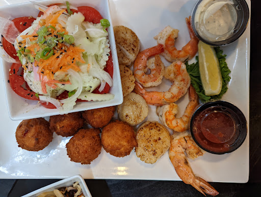 Last night was our first experience with this very local seafood restaurant and we found it to be very satisfactory. As a lover of clams on the half shell (why dont other restaurants that offer oysters this way also offer clams?). I thoroughly enjoyed the 10 Shucked Clams appetizer ($6). My son savored the homemade clam chowder and my wife fancied the Caesar Salad. The Blackened Mai Mai ($12) was delicious as were my sons unadorned chicken wigs. My wife had a sushi hand roll that made her smile. Importantly, I was able to get tasty side dishes that were on my weight loss diet. Service was prompt and very friendly (great job Alex). The decor is typical of a local seafood restaurant and nothing to brag about, and the rather loud rock and roll music playing throughout would be best eliminated. The beer list was up to date but the wine list really needs some attention (Italian Chablis - Really?). Prices were not cheap ($25 per person without alcoholic beverages), but not out of line for really fresh seafood. The overall experience was really positive. We will be back.