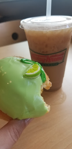 This Krispy Kreme location is always clean and well kept. The donuts are great and the employees provide a pleasant atmosphere. Krispy Kreme hats line the dining area ready for wearing. I always enjoy making memories there with my family.