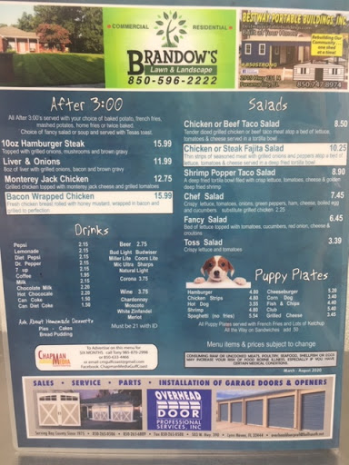 Delicious food and excellent servers and service. We have never had any complaints about this place and the grouper sandwich is the BEST in Panama City!!!