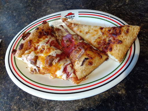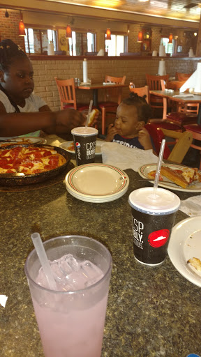 If you are the type of person who likes to engage with wait staff that mumbles, and points you in the general direction of a table this might be the pizza place for you. I mean really if straws arent important to be able to sip your ice filled cup with a spot of liquid (that randomly changes throughout the night according to how the wait staff feels (and you get to take off the waitress tray)), you might want to consider this place among your options. Not only will the cups change sizes, and beverages change, but your order will come out exactly NOT how you want it. I mean really, ask for beef added to something...is fabulous; who knew beef was invisible? If you have children please for the love of God and all that is great and wonderful do NOT let them get the pickles from the salad bar (no matter how long it is taking them to process your order I mean over an hour seems reasonable for a couple of pizzas right); they appear to be kosher, but they are none of the sort. Having placed in my mouth what appeared to be a pickle, you can imagine the surprise to my taste buds when the taste of jalapeno filled my mouth, and my throat began to shut. IT WAS WONDERFUL! So, yeah back to the pizzas. Two came out okay looking, and one had the invisible beef. Be it beyond me to be one of those people who likes to see what she eats, I asked the waitress to send it back to get the beef of the visible type. Within 30 minutes she came back out (by then the kids were done eating) with the exact same pizza covered in what we assumed was beef, and ate. Who knew twice cooked pizza would be so dry, tasteless, and well for a lack of better words come back and bite the next morning. Turns out that it wasnt beef after all, or so thats what my digestive system is telling me, so for anyone who wants a senseless wait, tasteless pizza, inattentive waitstaff, reused salad bar items this is the place for you. Your insides will love you in the end...Oh, not to mention how wonderful the management is. As we were paying they asked "How was everything?" Mind you he was talking to someone I assume was a friend for about five minutes, causing us to wait to pay (I know everyone wants to spend over 2 hours in a pizza place). To which I promptly replied "The food was okay, I guess, but the service sucked." He then went on to tell me about a broken window in the drive through, and not listen to what I was saying, so really this is the place for you to go if you want your complaints handled promptly and to be listened to attentively.