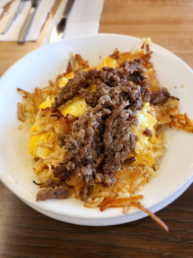 Fairly clean. Good scrambler bowl. Crowded on weekend mornings. Limited seating.