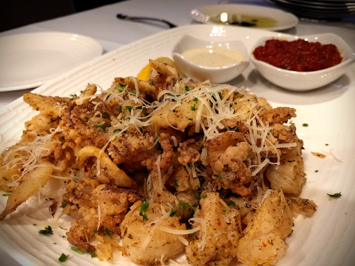 Our waiter seemed nervous... But he was good in spite of that. Attentive but not in the way. Only minor service glitch was a wait for the Barolo - they were out of the one I ordered so they upgraded us - our lucky night. The rachine (fritters) were delicate and flavorful. My linguini with clams was excellent. A tiny bit of grit in one clam but hey. The marinara sauce was thick and hearty and flavorful. But the atmosphere is like Im back in Bonefish. I hope they will add more Mediterranean flair as they go on. But overall, bravo.