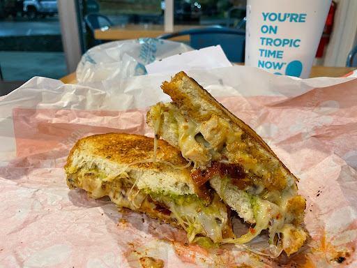I eat here almost 3 times a week and have never been greeted with a hello. I work in retail and customer service and words like please and thank you go a long way. I always say thank you and have never been replied with youre welcome. Food takes 15+ minutes to prepare and thats if the store is dead quiet. I ate at tropical smoothie in Niceville and they have the best service with a smile and are very efficient. Step your game up PCB Tropical smoothie. The 2 stars Im giving you is because the food is consistently good.