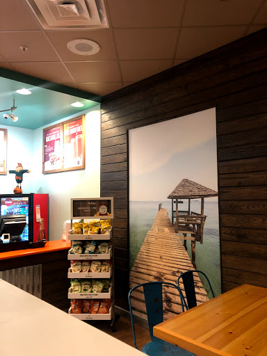 When I orders the clerk said they were out of blueberries, raspberries, mangos. I ordered the Jamaican Jerk Chicken Wrap and a smoothie with fruits which were available. The wrap was pictured on the sign behind the counter. It looks like it has corn, spinach, blackbeans and chicken or some similar menagre of veg. They were obviously out of many other ingredients because my wrap had only chicken and cheese with jerk seasoning. Disappointed :(