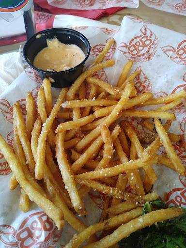 This place should have 5 stars but they lack at simple take out orders. I placed an order a couple of weeks ago and the hostess was very polite. I drove over exactly 30 mins after placing my order. When I arrived, it seemed as if my order wasnt ready. I then was told to stand at the front of the restaurant by the front door. I ended up waiting about 20mins at the front of the restaurant after waiting 30mins to leave my house. I only ordered two Medium Burgers. The place wasnt busy so I wasnt sure exactly why I had to wait that extra 20mins. I then checked out at the hostess desk. In brickell there is another B&B location and I hope someone from the Pembroke Pines location sees this. In brickell location all take out orders go to the bar. This prevents people from standing awkwardly at the hostess desk. It also allows me to sit and maybe have a beer while a wait that extra 20mins. I would then pay at the bar instead of having the hostesses ring it all up. If that place was busy, standing up front wouldnt be a good idea. People constantly going in and out and I am just standing there. Plus the hostess shouldnt have to do that especially if the place was swamped.