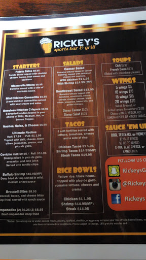 rickys is the best sports bar in the world... i love this place ... more tvs than hair on your head. we frequent this place year round. most sports bars will show the picture but not let you here the sound... not at rickys....the sound is always on on the big screen and other places in the bar. you can also request any sports team in season and they will set you up with either your own private tv or if you have a group ... rickys can accommodate your group ... there are personal tvs all around the bar, if you prefer to chill at the bar. outstanding bartenders... andrew, jordan, lindsey, drea and on a occasion serathy... are all off the hook and really push out drinks with ease and a smile... morie , is the video manager and peter heads up the kitchen. both are friendly and professional. the waitress staff is extremely friendly and work their butts off to make your experience, a good one..... so dont go to wild wings are all those trendy sports bars..... when you gotta see a mlb, nba, nfl, nhl,wnba, olympics,mma boxing, regular boxing , ncaa sports, or whatever your sport of choice .......go to rickys .. ... there is no other sports bar like this.... anywhere!!!