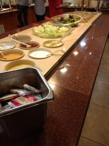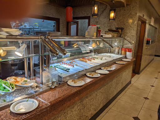 We have eaten here many times in the past during busy times of the day and had favorable experiences. The food was always decent and the sushi was freshly made. We were starving Monday night and looked them up and saw that they closed at 10pm and it was only 8pm, so we thought we would go and get our grub on. Bad, Bad decision. There was not much food, and what was out, was scrunched up into little piles in the steam table to keep it warm. It didnt help, because everything was cold by the time you got to the table. There was a large asian group from a local day spa there and we were sat in the small room along with all of them. The rest of the restaurant was empty. They were eating the only thing that was getting replenished on the bar, which was crab legs and crawfish. Of course there is a sign stating something like only take what you are going to eat of the crab legs in respect of others, yet I went up there twice and both times there was one measly crab leg floating in the water and just claws and leg pieces in the crawfish spot. Every one in the small room aside from my family was walking by with overflowing plates of crab legs. My wife even pointed out that the servers were bring out piled up plates of crab to the group in the room. We gave up trying to time it just right to get some, so I figured I would load up on sushi. The sushi chef was behind the counter and there was still a fair amount of sushi out, so I jumped in. Bad decision, the sushi was obviously old and had a tangy sour acidic taste to it, which is what you get when fish is left out too long. We decided to cut our losses and just leave, so we made it clear to the servers that we were done, so we would get our check. Our server soon brought us our check and upon opening it, I was kind of shocked at the amount. They actually charged like it was busy and they were actually putting out fresh food constantly. Oh, I know, they had to get everyones crab legs paid for. In haste I threw the money for the bill in the check folder, $54.00 and we walked out. We were quickly chased down, because I shorted the waiter .52 cents and he demanded it. I gave him a $1 and should have asked for change for the insult. Bottom line, this place is one of the more decent buffets around, just dont go there when they are any where near closing. Only go here during lunch or dinner rush, or you will regret it.