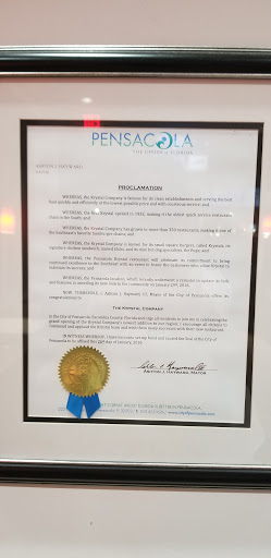 This is the newest Krystal Restaurant in the Pensacola Market brand new building interior is clean exteriors clean and well-maintained and very well-lit the service is very fast and efficient. On my visits to this location the employees have been professional and very courteous. The food is always hot and fresh and this reflects the true quality and value of Krystal hamburgers.