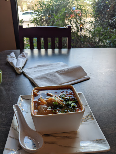 Came on a Sunday evening, I think we were the only ones here. The host/server was terribad. He didnt grab menus or silverware before seating us. He seemed mentally slow but not in the retarded way. Took him forever to take our appetizer and entree order. Forgot to bring silverware and water after we asked once. My food came out before my partners. I had finished appetizer, soup and my entree before his came out. I had the chicken lemongrass soup, it was overly spicy and salty. I has the green curry shrimp, which was ok but very soupy for a curry dish. Ive had better where I live. He has the seafood basil which was ok as well. Nothing either of us though phenomenal. The server brought the bill before asking if we wanted dessert or anything else. Overall, service was shitty, food was ok, atmosphere was dated and dreary. Doubtful we would come back.