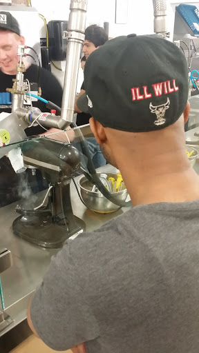 Chill-N My friends on Yelp know that I love this place, they know this because I check in a few times a month and feel no remorse for it whatsoever lol. Its definitely my favorite Ice Cream spot. Chill-N is such a unique but simple idea. Take some dairy, add some flavoring, throw in some mix-ins and then super cool it all using the power of liquid Nitrogen. The staff is made up of friendly faced teenagers whom seem to actually enjoy coming to work. Even when the line is peeking out the door. I like the "chemistry-style" experience of ordering your ice cream off a wall chart that resembles the periodic table of elements. I recommend the: Bs/Ce/Nt + Kd Its Biscotti + Coffee + Nutella flavoring added to your ice cream which has a krispy kreme donut mixed in. ITS AMAZING! Try it, youll thank me. Pros: Ice Cream made right in front of your eyes Ice cream made right in front of your eyes using a cool Nitrogen gas cooling system. They also serve frozen yogurt if youre looking for something a little lighter Friendly staff The pricing is fair Cons: During weekends and some nights the line can literally be out the door. Its cramped inside, so get ready to rub elbows with a stranger. There is VERY limited seating space, so just know that youll probably be taking it to go.