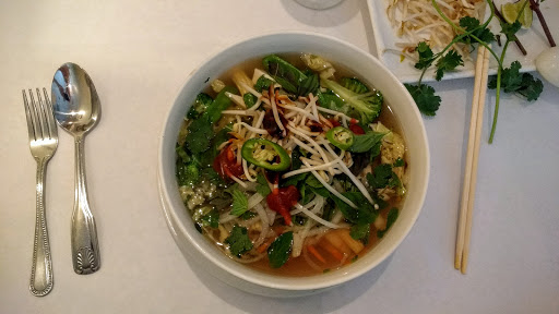 Very clean and modern restaurant. They didnt have vegetarian Pho (vegetable broth) so I ordered the vegetable eggs roll and veggie spring roll. Both were decent, not the best I had but decent, the presentation/however, was very pretty. The spring rolls were presented on a very unique and beautiful plate as were the egg rolls. I give this location 4 stars for cleanness, modern and pretty food presentation. The food is 2-3 stars. The staff is very friendly, prompt and attentive. Easy parking Wheel chair assessable