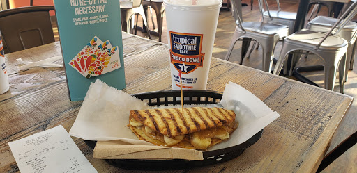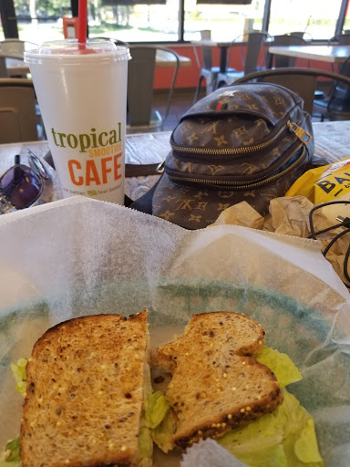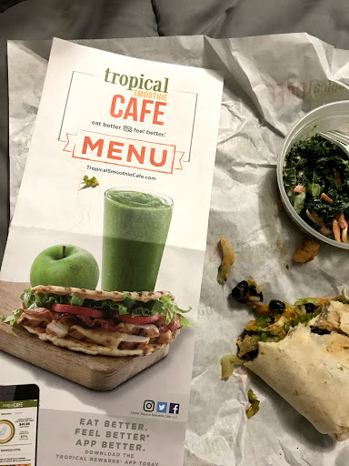 I come here after every Saturday morning tennis play. Tropical smoothie is always trying new flavors. They must know what their doing because the new flavors always taste good. I tend to stick with a mango smoothie if Im not too sure. Cant go wrong there. The food is healthy and a decent size so you dont go stuffing your face. The wrap and smoothie combo gets you the best value.