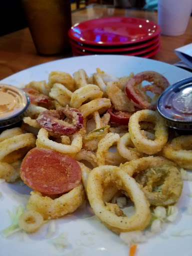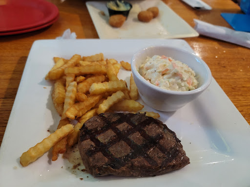 First visit was disappointing. Finally decided to try this place after living in the area for a while. The ribs were very good and the best part of the visit. Fries and popcorn shrimp were cold when we got them and chicken wings were decent. Food came out at different times and some of the sides were wrong, which was understandable since their machine was down that evening and they had to do everything by hand. The worst part of the experience was when we got the check... there were extra charges for a wing flavor we werent told about when ordering and the manager refused to take a $ off coupon, which was the reason we decided to give this restaurant a try in the first place. Apparently if its a day-of-the-week special or drink special it doesnt count towards the qualifying amount...Never been to a place where you cant use a coupon if ordering something on their blackboard...Plus, we mentioned we had the coupon when first ordering and werent told we wont be able to use it on our meal and drink selection. Instead of arguing i just paid the check, but we wont be back. The coupon would have only saved us $5, which is nothing, but with a sports bar on every corner around here i dont see a reason to come back to a place that engages in such bait and switch tactics to get people in.