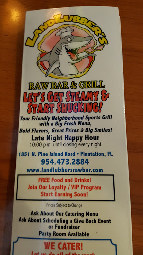 If you find yourself in the unfortunate position of being seated at a table in landlubbers I promise youll wish you were in the comfort of your home with a can of tuna or sardines. The food quality and atmosphere will be infinitely better than at this restaurant: Finding a parking space at the unbelievably overrated landlubbers will be very time consuming, and the walk from your car would cause even the most finely tuned athlete to be exhausted and out of breath. If you manage to make it into the restaurant itself youll be greated by a noise level that will threaten the future of your hearing. The staff will treat you like a ghost, but may acknowledge you in a half hour or so if theyre not too busy. To try to sum things up, inexperienced diners may consider the food to be slighty better than awful, the unattentive, rude staff cares far more about their own gossip than your order or providing you with a pleasant overall dining experience, but to landlubbers credit, theyre clever enough to have a lot of TV sets so you can watch ten ballgames at once and forget about how bad the food and service are.