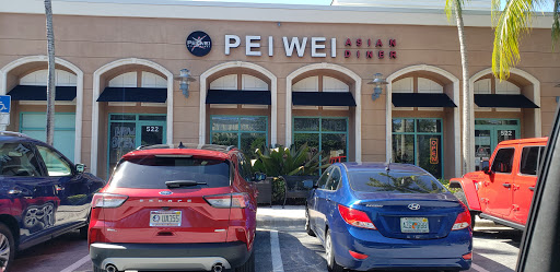 Pei Wei serves a variety of Asian foods (but no sushi or fish), such as rice and noodle-based entrees, salads, appetizers and a childrens menu. There are even party platters for large groups. Most meals come with the option of beef, chicken, shrimp or vegetables with tofu. Several dishes are vegan-friendly if you order with tofu. There is also notification as to which dishes are spicy. What makes PW unique is the fast food ordering/seating style. The menu is displayed in large images on the wall, and you choose your order. Then you pay, and receive a sign with a number. You pick where you want to sit, and display the assigned number on a structure on your table. Then your food is brought to you based on the number on the table. Utensils, napkins, drink glasses, condiments and take out boxes are available in the back section. PW is very affordable. Most entrees are two servings worth, costing $7.00-9.00. If you eat in, be prepared to take half of your meal home.