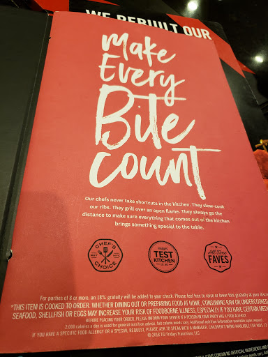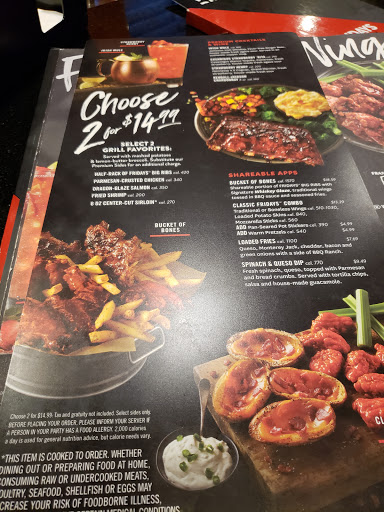 I just walked in the door with a friend to sit at the bar. Unfortunately, there were no seats, so we asked the doorman if we could get seated. When we were escorted to the high tops at the bar, we were told by another person that the seats were not available. I saw the waiting list....all the names were gone. There was no one waiting at the door. Sediki Poindexter was the person who ruined our night. They lost my business for good. Avoid this Fridays. Staff was not friendly to us. We walked right out.