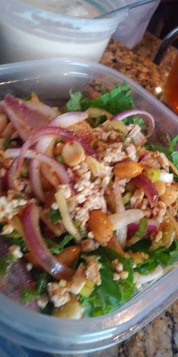 I eat here at least once a week. They make Ground Chicken Basil, which is a traditional Thai dish that most Thai restaurants wont make. It is very tasty. Fried Salmon Penang and Red Curry are also very tasty.