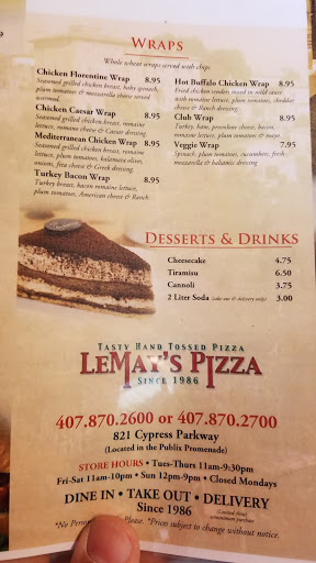 Lemays Pizza is an excellent Restaurant. Great service, great delivery and most of all, amazing food! Their ingredients are fresh and food made on the spot, nothing frozen. It is easily the best restaurant in Poinciana, and will be for many years to come!