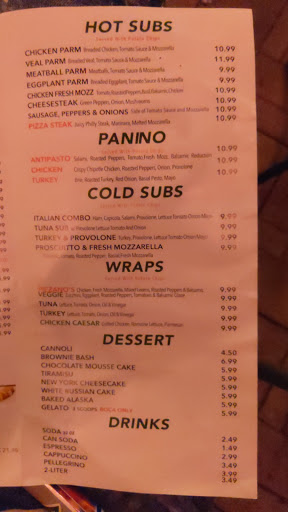 Much to my surprise, this location is take out only. This is the first time we tried this restaurant. I had a dinner of eggplant parm and my boyfriend had chicken parm, plus a slice of pizza. The portions were quite large and both dishes were quite tasty.The slice of pizza was good as well, and my boyfriend is from Brooklyn, so he knows pizza. The only caveat I can give is that the tomato sauce is a combination of a sour sweet taste. Weboth likked it, but I can see where some people may not.Overall, for a first time experience , we give it a 4 out of 5 stars.