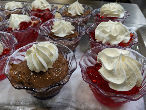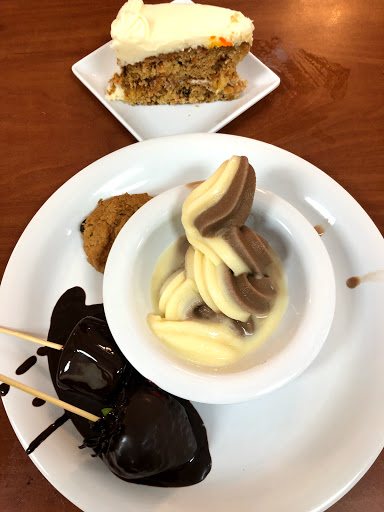 Ok food at salad bare was old like tomatoes lettuce Did not have good things like utter stores to pick from Load music kids all over under 12 YRs old Did not get stake like I ask for kind like rubber and was not medium Well was Too many marshmallows and they are still Mens room clean but floor needs mats it is not safe in my book Not a lot of desserts to pick from wipe cream is not kept in the refrigerator it is worm