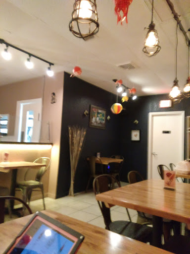 Very small non descript place. But Id call it cozy. I ordered spicey Miso Ramen. Growing up eating the non spicey Ramen It took me a couple of slurps to get use to the broth. Well Im a fan!!! Ramen has been a tough find until recently down here in south Florida. Being a former New Yorker having ramen almost every day, this passed the test!!! You will love it!