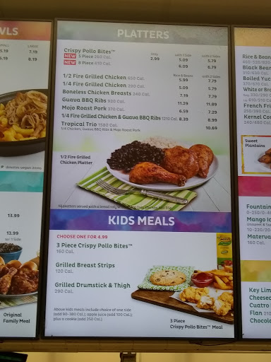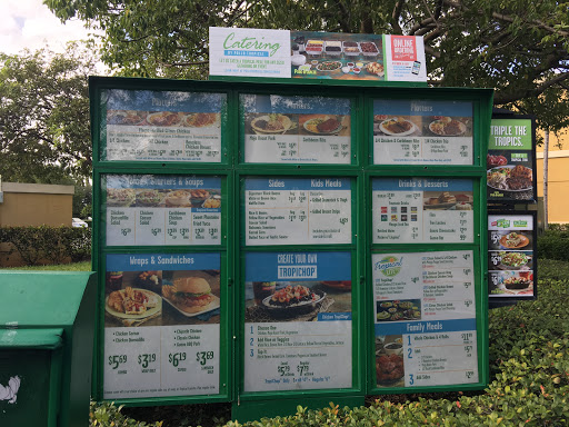 I love Pollo Tropical, but its Pompano Beach branch may be the most disorganized location ever. Ive been there 4 times, today i got no dressing with my quesadilla salad, the time before i ordered online, when i got there after waiting in line for 15 minutes they told me they did not have sodas which i paid for before i got there, so all i could have is water, not juice because thats just how it works. Before that they had no pollo pollo sauce and its always a hell of a wait on your lunch break, doesnt make sense ordering online either, the wait is just as long if not longer