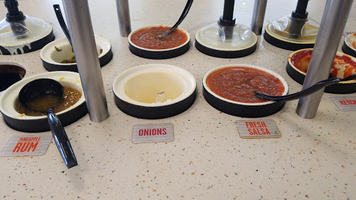 Place is dirty, condiments, salsa, sauces all empty..tables filthy, bathroom filthy and no soap, found dead touch in toilet section... THOUGHT EMPLOYEES HAVE TO WASH HANDS....no soap.....garbages are full.....will never go back......
