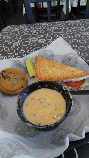 Just opened yesterday so hopefully service will improve as I waited 25 mins in drive thru line. ordered 1/2 original sand - was good although i do prefer celery in my chicken salad. Bread was supposed to be toasted - it was but may have been pre toasted bread as it was very soft. Ordered no tomato but it had tomato. Again hopefully service improves. Also got cup of tortilla soup which i can say was AMAZING and will bring me back for sure.