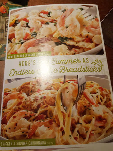 3. So I went back to this olive garden several times after my two awesome reviews and sat at a table waiting for service for 20minutes and no one came. There were however 3 servers standing around laughing and talking, Im sure one was my server. Just come over and get my drinks then do whatever you want but we werent even acknowledged. I will never be returning to a place I cant get any service 1. Had a great dinner! Will be back! Everything was delicious, my fiance and I both had the chicken marsala which was fantastic. Our waitress Maureen(moe) was awesome, as a fellow waitress my expectations were high and she exceeded them, ask for her! 2. Came back for lunch recently had a server named Jessica who was gave us amazing service. The food was delicious and fair priced. We are so satisfied we have FINALLY found a place to go out and eat!!