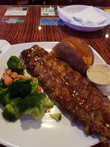 Wait staff was awesome. There just werent enough servers. Steak was overcooked. Our server sent a manager to fix the situation instead of just have the kitchen redo it. Baby back ribs tasted boiled and microwaved. The only flavor from these ribs was a very vinegary over powering sauce. Scalloped potatoes were swimming in grease. Burgers were very obviously frozen patties. They were very bland. No vegetables available as sides except for coleslaw without an upcharge. Overall, very disappointed. I dont plan on ever coming back. This place used to be awesome a few years back. What happened?