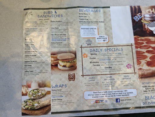 Have been staying in Redington Beach in the fall for the last five years. The very first meal I have every time, as soon as we get settled in our condo, is Beach Pizza. I am totally ruined for all of my local, northern Indiana, pizza joints! Absolutely the best pizza in the area...my opinion. Like it so much I have a pizza box lid hanging in my garage with my motorcycle memorabilia and my bikes. Its January 3rd and Im already looking forward to my fall visit. Yall ever mail a pizza? ;) Excellent!